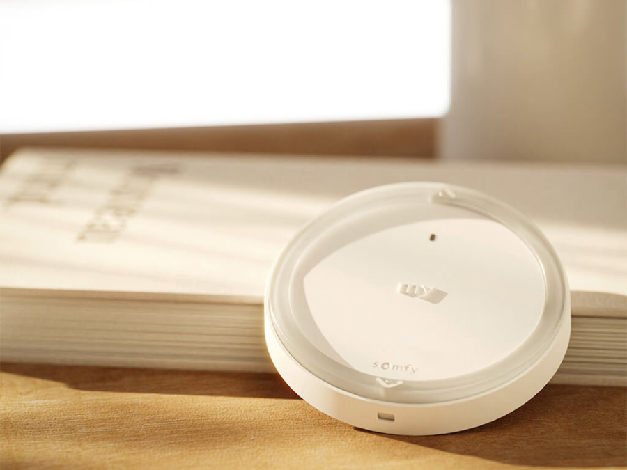 2. Zintegrowany czujnik temperatury wewnętrznej – w połączeniu z systemem TaHoma umożliwia automatyczne scenariusze: np. obniżenie rolet, gdy temperatura przekroczy ustawiony próg, co pomaga utrzymać komfort termiczny.